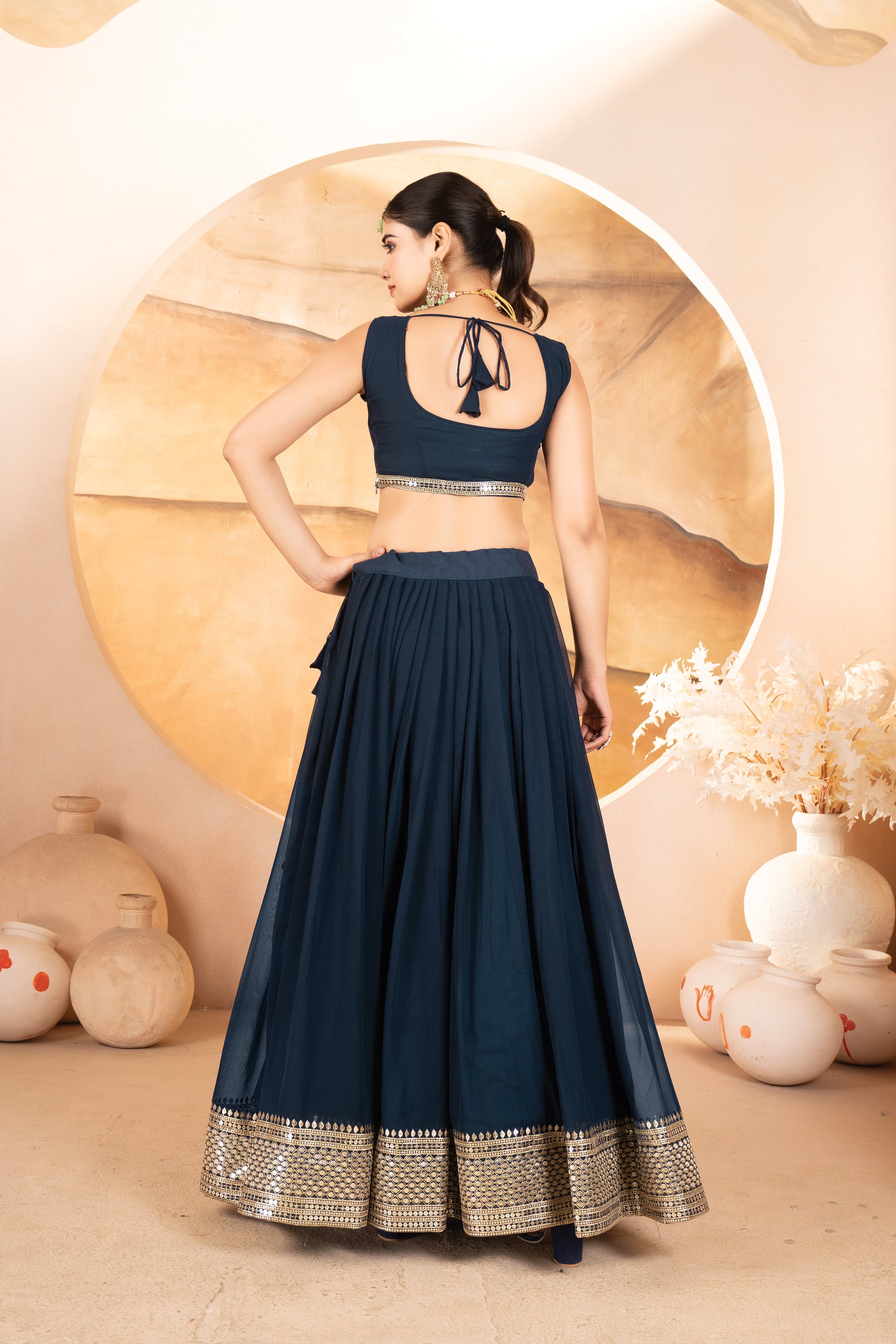 👉🏻 Fabric & Work:- Faux Blooming With Embroidered Sequins work