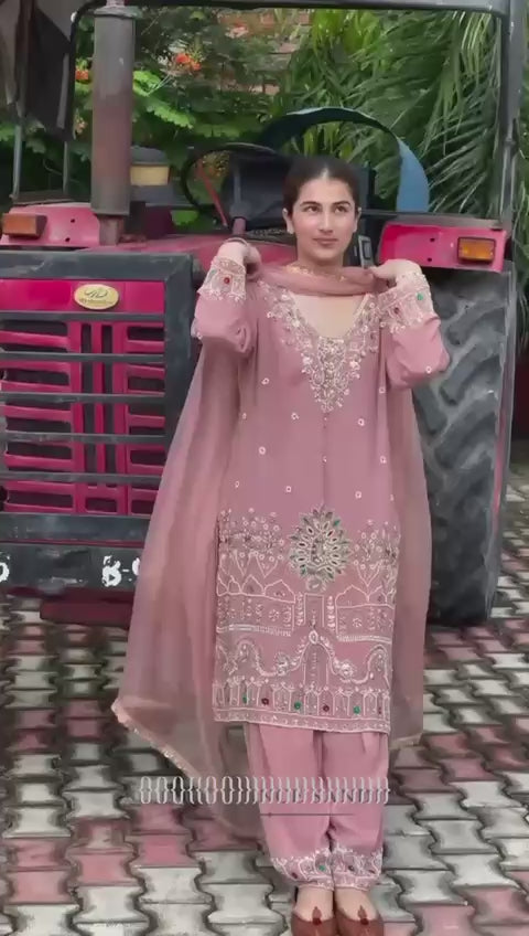 🌸 The French crepe fabric with embroidery paired with an organza dupatta gives a designer touch at an affordable price.