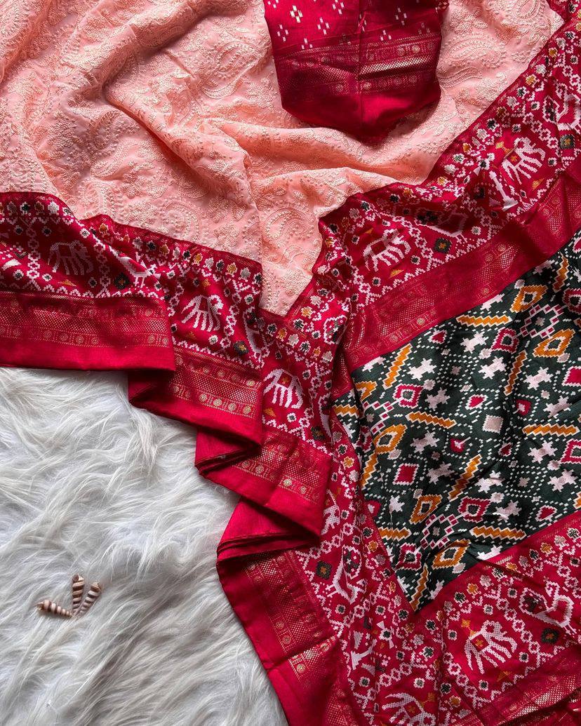 Premium Georgette Chikankari Lucknowi Embroidered Saree