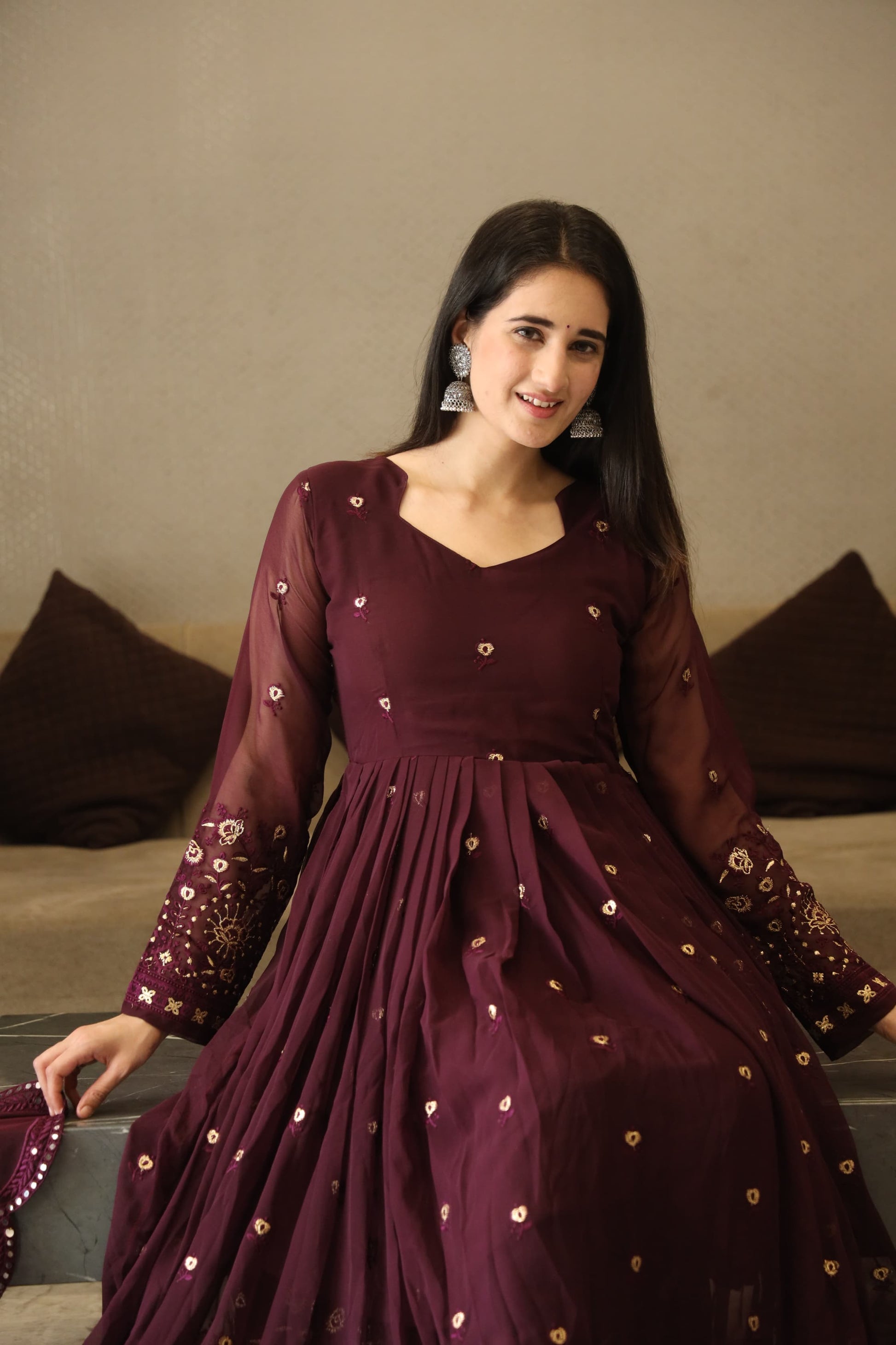 VIBHUTI'S WINE COLOURED ANARKALI SUIT SET - 06