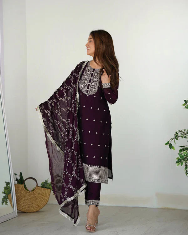 *PRESENTING NEW BEAUTIFUL PURE BLLOOMING VICHITRA SILK FABRIC STRAIGHT FIT KURTA WITH DUPPTA SET,TROUSERS,READY TO WEAR*
